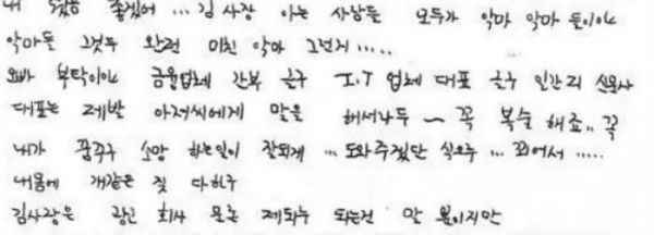 直到2011年张紫妍忌日前夕,韩国SBS新闻节目首度公开张紫妍多达50多封、230页的遗书,内容指出她被经纪公司老板金承勋当做“性奴”,被迫向31名娱乐圈、财经圈、政商界大佬提供高达100多次惨无人道的性服务,最后因为忍受不了才选择自杀。