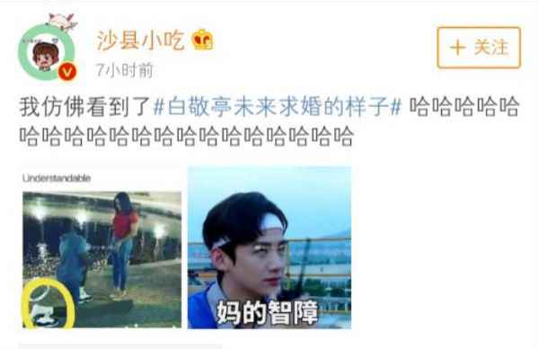 4月14日,大概打开微博的xbg都一脸懵逼,白敬亭怎么又被沙雕热搜盯上了?!今日有博主看到一张男子拖鞋求婚的图片,称“仿佛看到了白敬亭未来求婚的样子 哈哈哈哈哈哈”,因此#白敬亭未来求婚的样子#登上热搜排行榜第一,怀柔鞋王你感动吗?